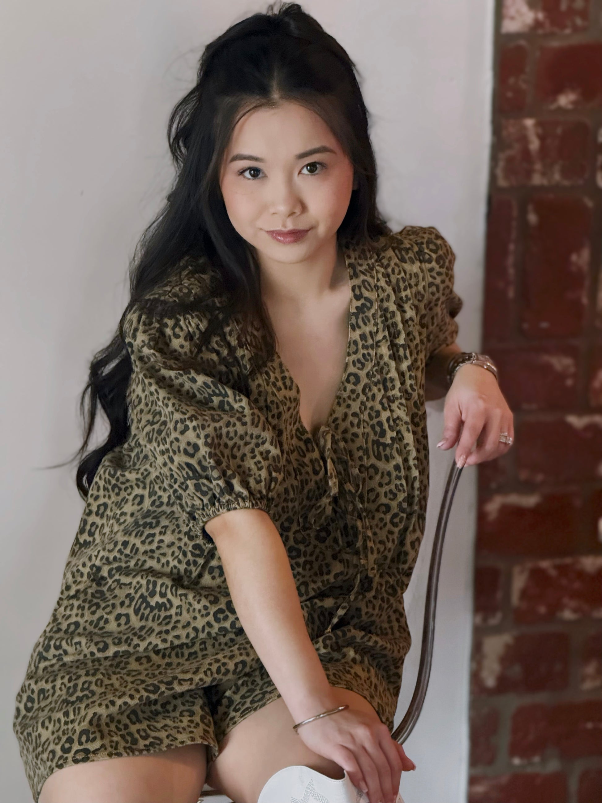 Flirty meets effortless in the Savannah Sweetheart Romper. Featuring a soft leopard print, a flattering V-neckline with adjustable tie-front details, and airy puff sleeves, this romper gives you the look of a dress with the comfort of shorts. Its relaxed, flowy silhouette makes it perfect for brunch dates, weekend plans, and sunny getaways.
